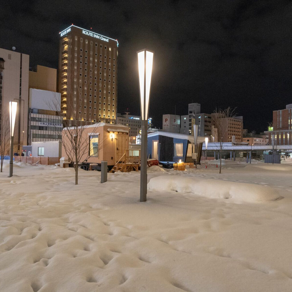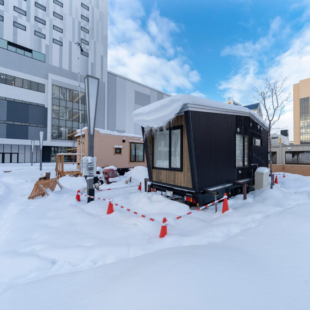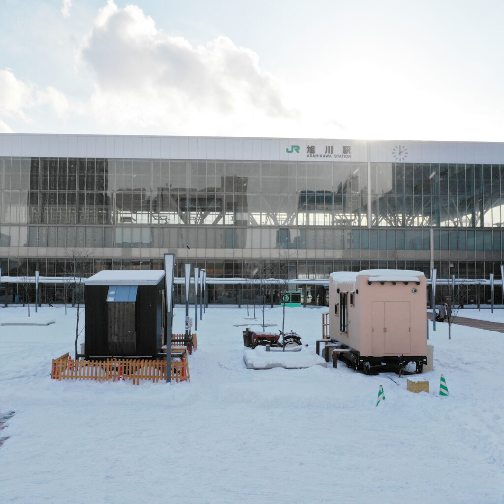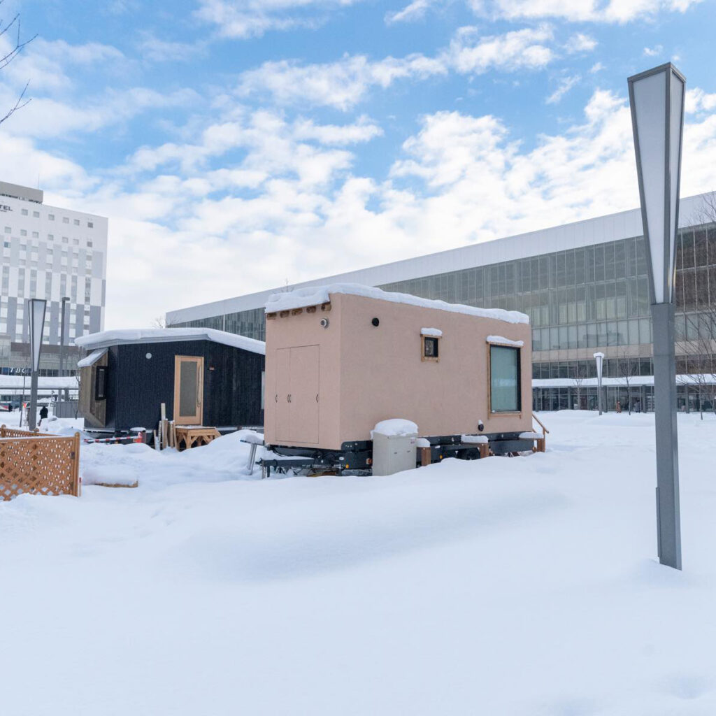 2019年の冬、旭川市との協働事業として駅前広場に2棟設置し、宿泊体験していただきました