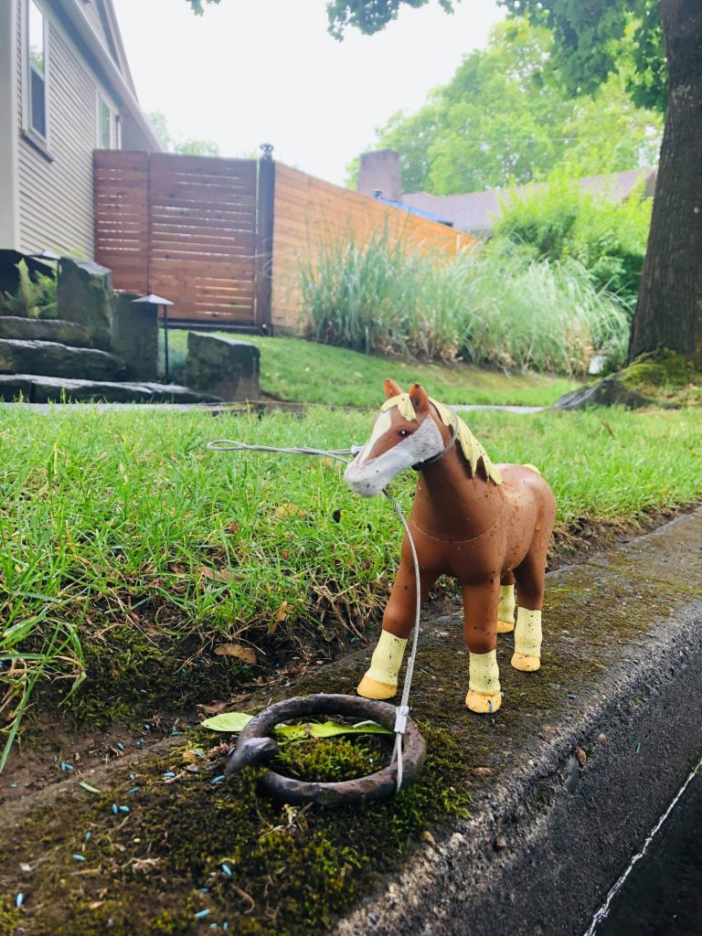 こちらの住人の方、優しいですね。よく見るとお馬さんもマスクしています。